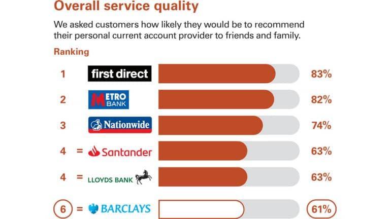 Une enquête indépendante a demandé aux clients s'ils recommanderaient leur fournisseur de compte courant personnel à leurs amis et à leur famille..